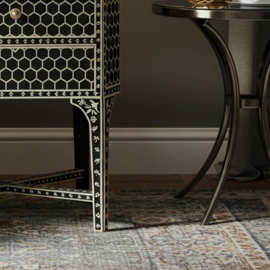 • Handmade black bone inlay nightstand with honeycomb pattern