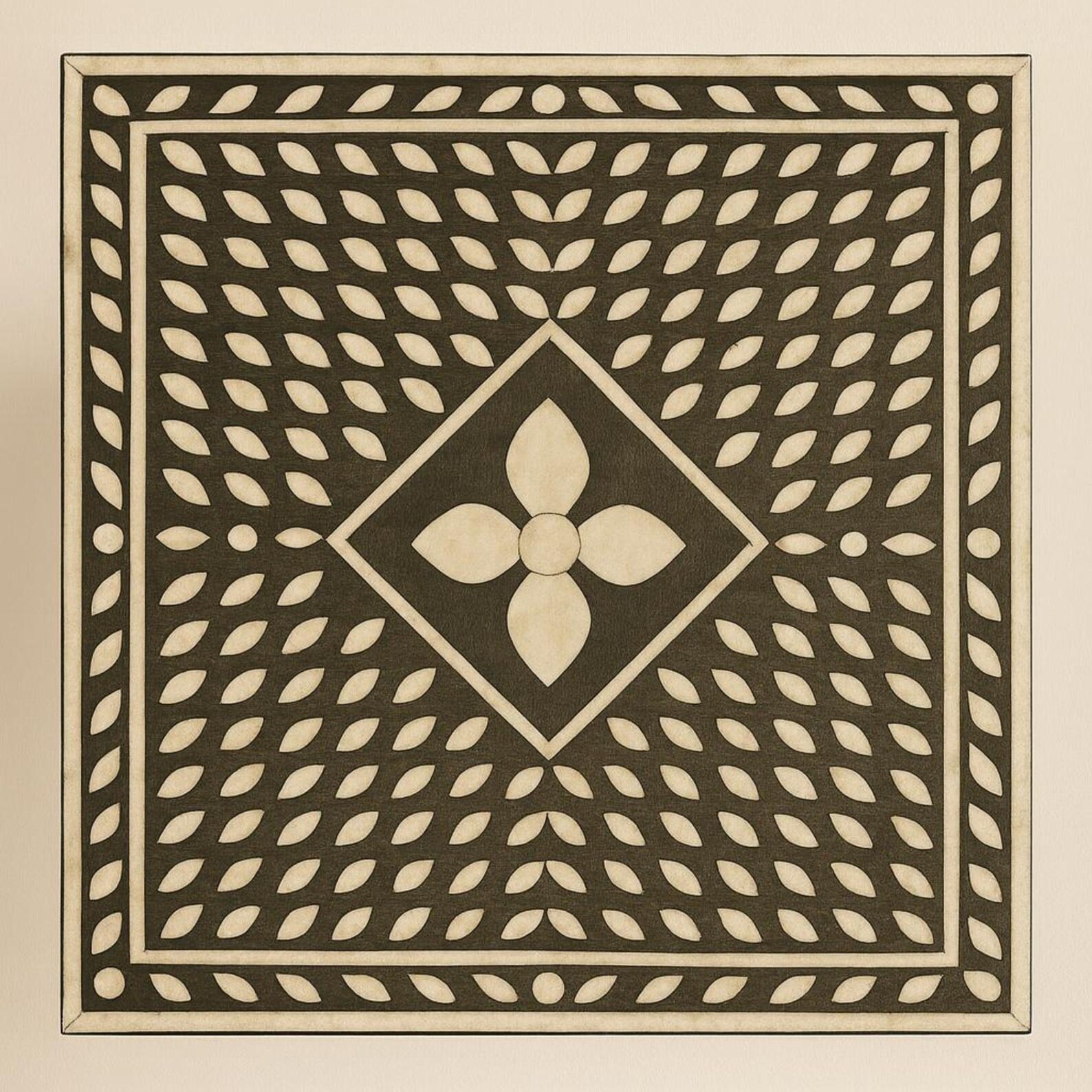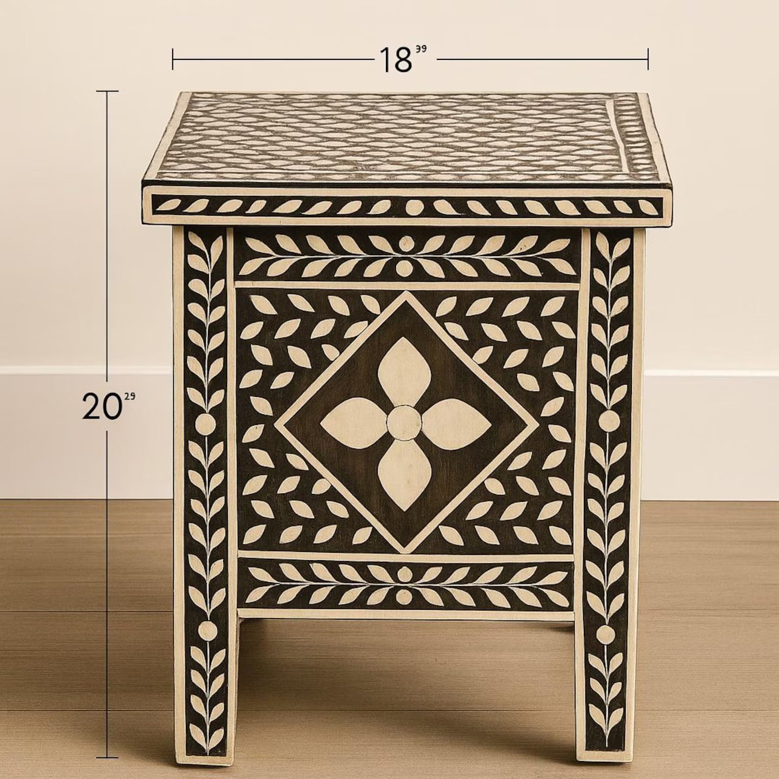 Handmade Bone Inlay Side Table – Black & White Floral End Table