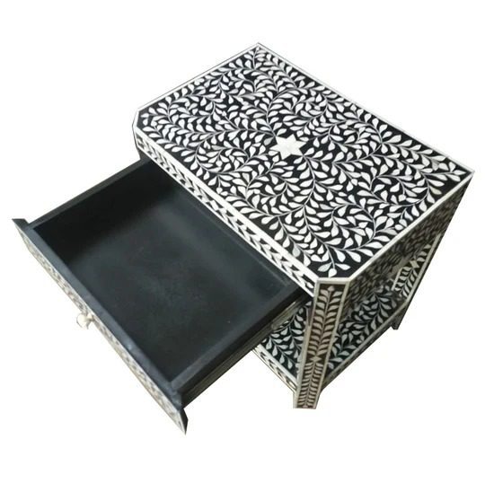 Bring timeless elegance and artisan charm into your interiors with the Grey Floral Bone Inlay 1 Drawer Bedside Table, a handcrafted masterpiece by skilled artisans of Rajasthan, India. Designed to blend luxury with function, this nightstand is the perfect addition to modern and classic interiors alike.