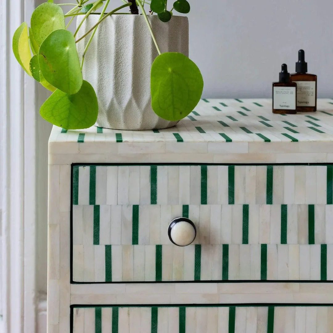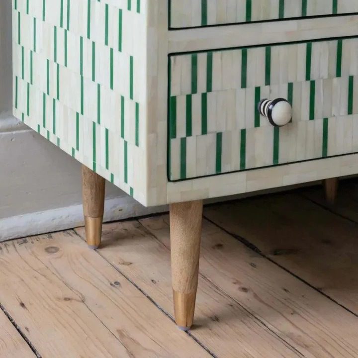 Each bedside table is handmade, showcasing slight natural variations that highlight its authenticity. We provide free worldwide delivery, making luxury bone inlay furniture accessible everywhere.