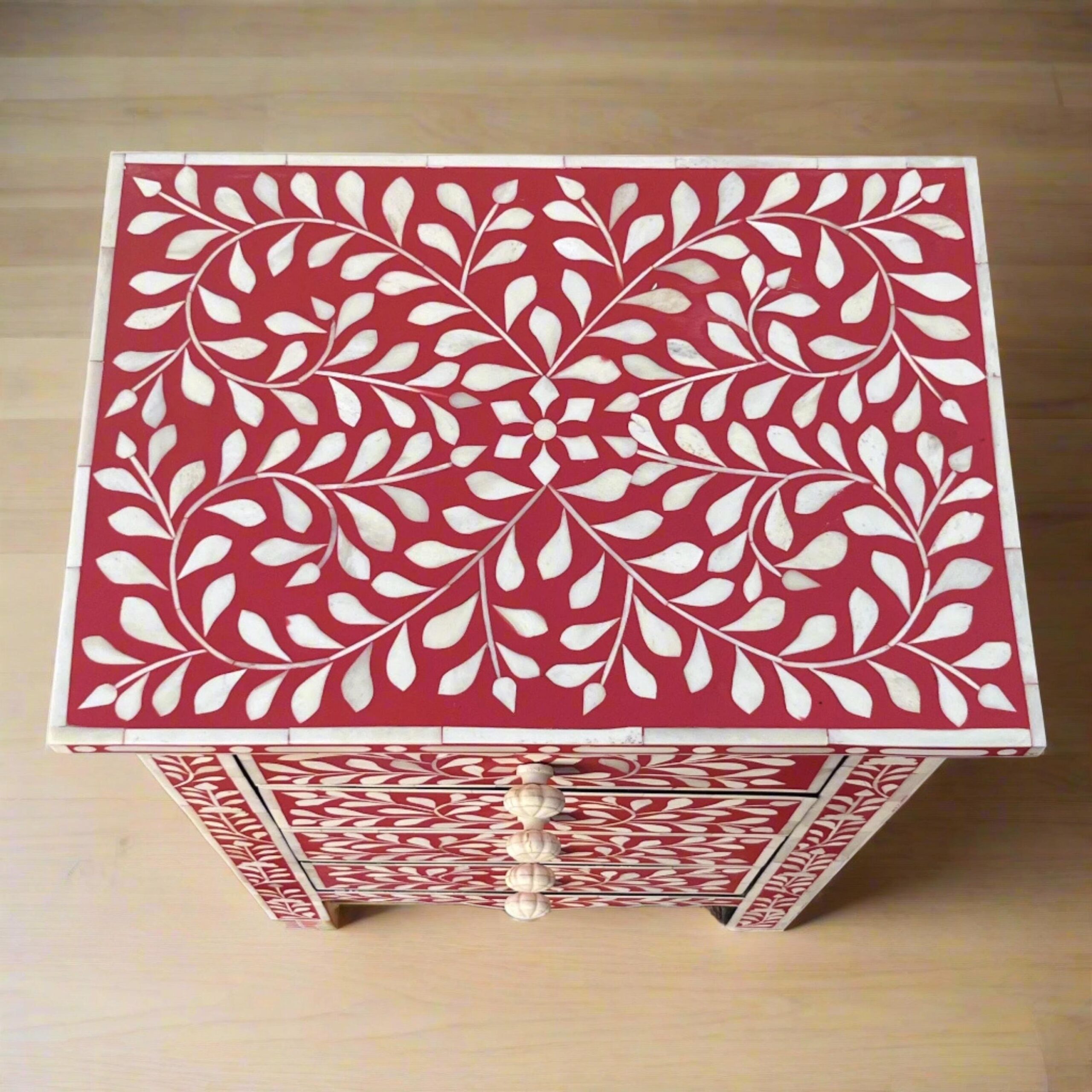Bone Inlay Side Table with Drawers – Handmade Nightstand