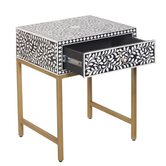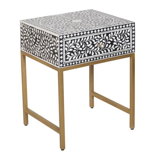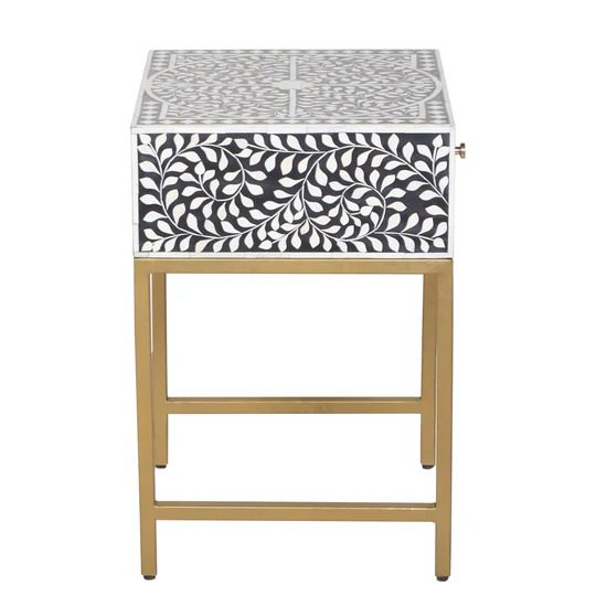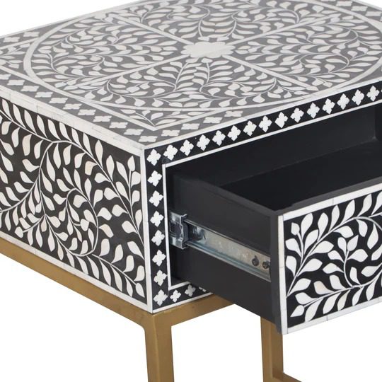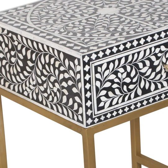 Bone Inlay 1 Drawer Bedside Table – Black Floral Bedside