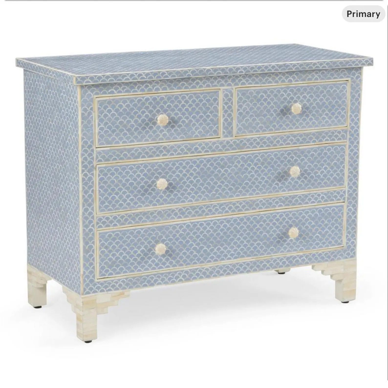 Coastal Blue Bone Inlay Dresser – Fish Scale Pattern
