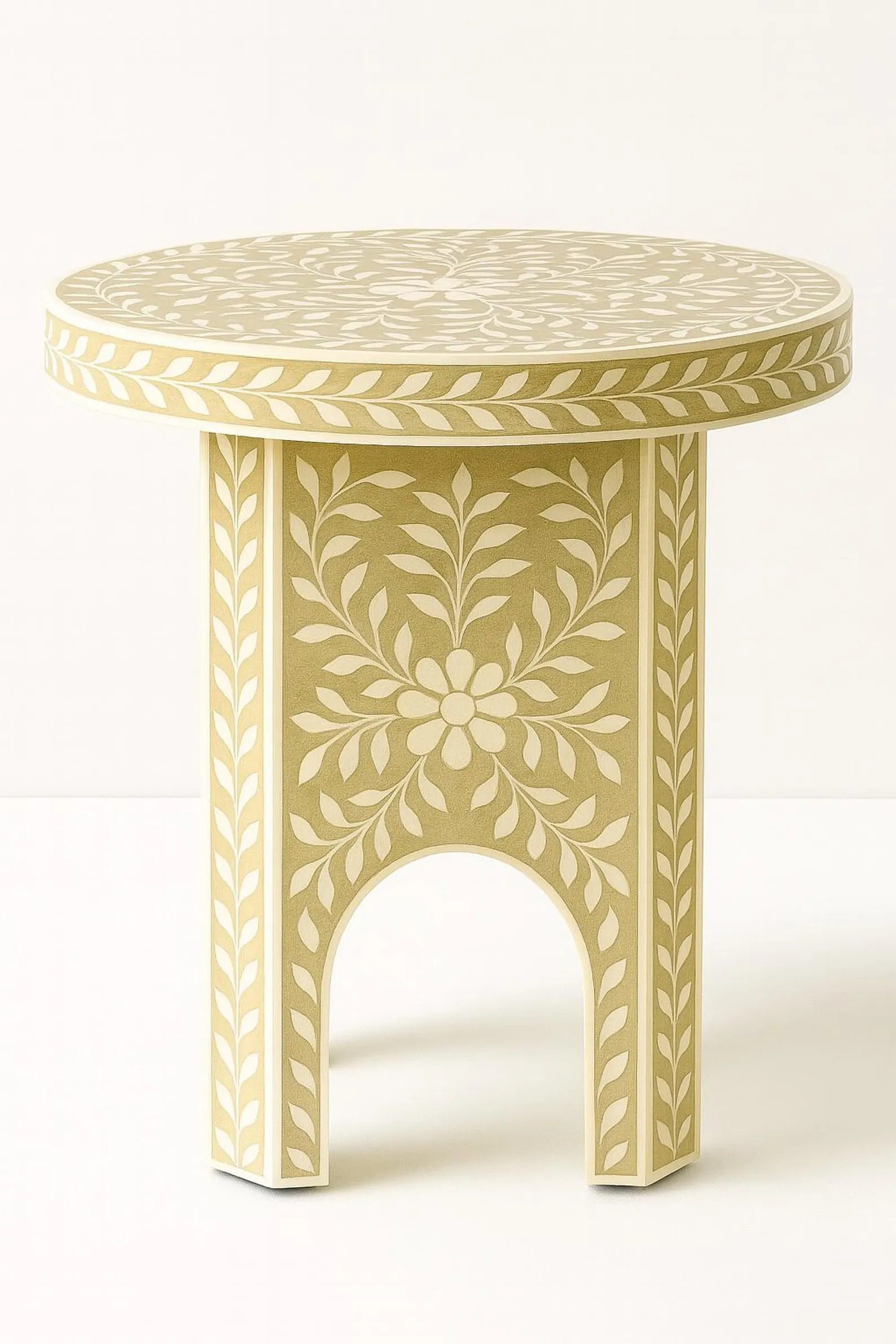 Handmade Bone Inlay Side Table – Floral Boho Accent Table