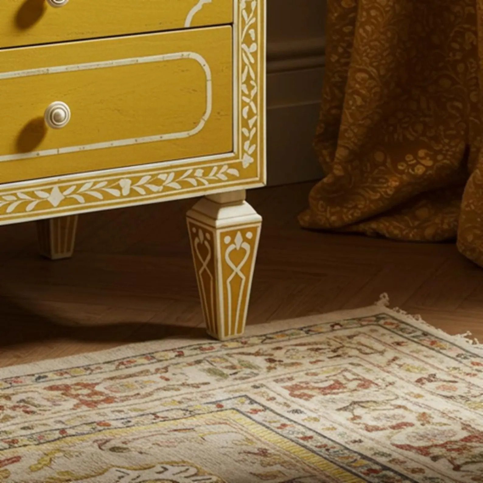 • Handmade yellow chevron bone inlay nightstand